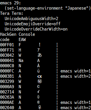; TERATERM.INI [CellWidth1] Name=sample1 Range1=U+2605,U+2606,2 Range2=U+00a9,2 Range3=U+1F363,0 Range4=U+2665,1 Range5=U+1F90D,2